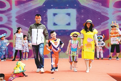 近日,甘肅省蘭州市西固區蘭玻幼兒園的“親子環保時裝秀”激情上演。一個環保袋、一個紙盒、一個小杯子……在幼兒和爸爸媽媽的巧手下被賦予了新的意義,也增進了親子之間的感情。“我們大力倡導環保理念,增強幼兒環保意識,陶冶幼兒藝術情操,更好地發揮幼兒的想象力和創造力。”該園園長周文莉說。本報記者 尹曉軍 攝