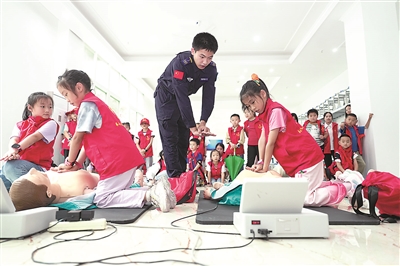 近日,共青團重慶市北碚區委聯合當地公安司法部門開展“志愿護童·暑期安全第一課”活動,以提升孩子們暑期安全意識,讓孩子們平安快樂度過假期。秦廷富 攝