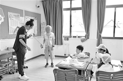 7月8日,在位于上海市敬業初級中學的老西門街道愛心暑托班,小學生們在了解體驗擊劍運動。當日,2024年上海市小學生愛心暑托班正式開班,遍布全市16個區的699個辦班點迎來數萬名小學生報到。2024年上海市小學生愛心暑托班由共青團上海市委、上海市教委共同牽頭,聯合多個部門和單位共同主辦。