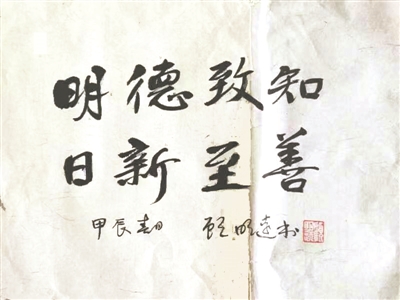 顧先生為人師表,德藝雙馨。他給學校題詞,是他對教育事業的另一種無私奉獻。他的題詞內容和書法藝術,成為學校文化一道亮麗的風景。顧先生說,寫字、書法,是中國傳統教育的入門課和必修課,不僅僅是一種技能訓練,而是有全面育人的重要作用。他希望學校重視書法教育,老師和學生都寫好中國字,傳承中華文化。