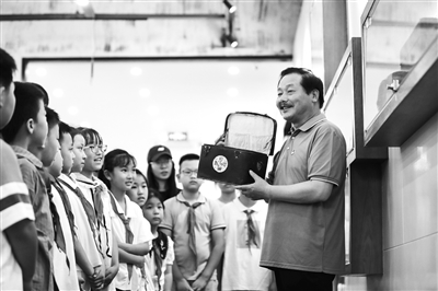 7月16日,浙江省湖州市德清縣鐘管鎮(zhèn)干山紅色記憶館,一名老黨員在向少先隊(duì)員們講述當(dāng)?shù)氐募t色故事。暑期來臨,當(dāng)?shù)亻_展青少年愛國主義教育研學(xué)活動(dòng),組織轄區(qū)的返鄉(xiāng)實(shí)踐大學(xué)生、干山小學(xué)少先隊(duì)員來到干山紅色記憶館,了解本地的紅色文化,上好“行走的思政課”。