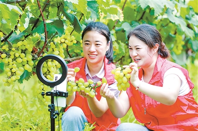 近日,在浙江省湖州市長興縣畫溪街道曹家橋村葡萄園內,來自畫溪街道包橋中心幼兒園的青年黨員教師通過網絡直播平臺幫助果農銷售葡萄。日前,包橋中心幼兒園青年黨員教師開展“葡萄采摘 直播助農”志愿服務活動,利用“互聯網+直播”等多元化手段幫助果農拓展銷售渠道,促進果農增收。