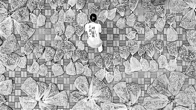 圖②:中國農業大學在讀碩士生張凈然在整理采集到的玉米樣品(無人機照片)。 新華社記者 張楠 攝
