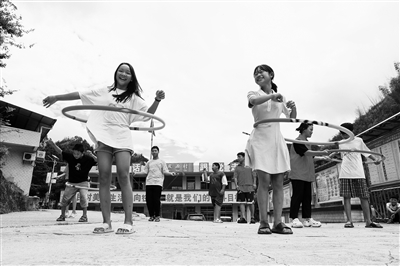 近日,湖南省永州市新田縣門樓下瑤族鄉青皮源村,大學生志愿者在和孩子們玩呼啦圈游戲。暑假以來,湖南農業大學學生志愿者參加該村組織的“暑期愛心課”義教活動,通過對孩子們進行學習輔導、課外閱讀、運動游戲、防溺水安全教育、農耕文化體驗等教育活動,豐富瑤鄉孩子們的假期生活,共同度過一個有意義的多彩暑假。