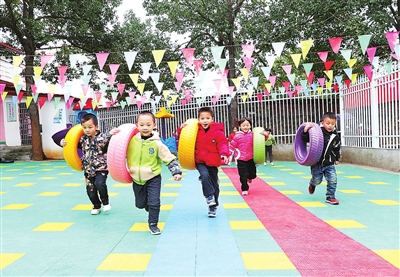 ②湖南省永州市新田縣的鄉村幼兒園里,孩子們在高興地做游戲。