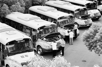 8月29日,江蘇省揚州市寶應(yīng)縣公安局民警在對校車進(jìn)行安全檢查。秋季新學(xué)期開學(xué)在即,寶應(yīng)縣公安局組織民警對轄區(qū)中小學(xué)校、幼兒園的校車、消防、安防等設(shè)施設(shè)備進(jìn)行檢查,并對校園保安進(jìn)行應(yīng)急處突培訓(xùn),全力做好開學(xué)前的安全保障工作,迎接新學(xué)期的到來。沈冬兵 攝