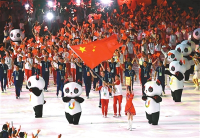 ②2023年7月,第31屆世界大學生夏季運動會在四川省成都市開幕,來自113個國家和地區的大學生體育代表團相繼入場。