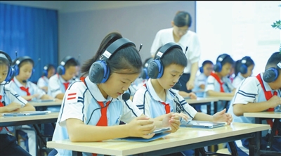 ③海口市濱海第九小學美麗沙分校學生在利用國家智慧教育平臺上課。