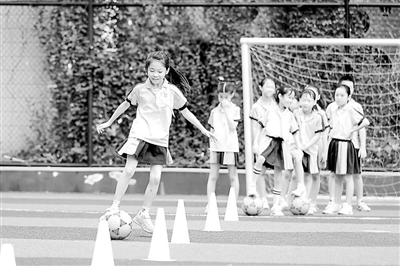 福建省福州市鼓樓第五中心小學(xué)學(xué)生進行足球控球訓(xùn)練。 通訊員 謝貴明 攝
