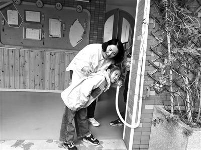 廁所里有3個小朋友,一個正在拉粑粑,另外兩個正在觀察。他們觀察的方式有點兒特別——兩人站在小馬桶旁邊,身子彎著,手抓著馬桶的邊緣,而頭則“鉆”進了馬桶里。自從那天之后,隔幾天教師總會發現廁所里又駐扎了一批新的“觀察員”。他們一邊觀察一邊聊著:“你說,粑粑是怎么拉出來的呢?”“看一看不就知道了。”“那粑粑是怎么被沖走的呢?”一個小朋友伸手按了下按鈕說:“你看,被沖走了。”“哦,被水一沖就走了,那粑粑被沖到哪里去了呢?”“我也不知道,我們再把頭伸進去一點兒看看。咦,沖到洞洞里就不見了。”