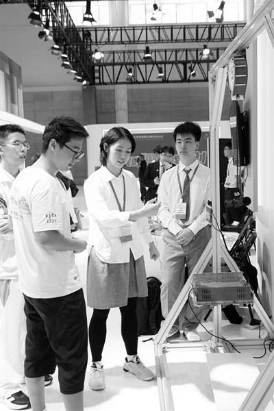 在大學生創新成果展上,參賽選手介紹團隊項目。(圖片均為主辦方提供)