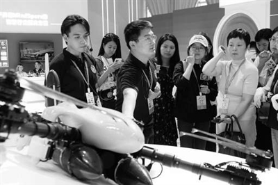 在大學生創新成果展上,參賽選手介紹團隊項目。