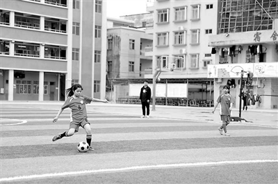 化州市新安鎮(zhèn)龍?zhí)缎阌⑿W(xué)女子足球隊(duì)訓(xùn)練日常。 梁紹聶 攝