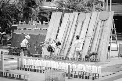 教師的思路被打開后,我們看到了讓人驚喜的改變。短短一年,幼兒園整合出具有結構層次及符合年齡特點的百余種游戲材料,包含積木、積塑、竹類、紙質和輔助材料等,它們易獲取、低成本、可移動并且可自由組合,在建構游戲中通過孩子們的手大放異彩。在支持性游戲環境方面,我們充分利用幼兒園現有的沙池、草地、泳池、操場等戶外場地及自然資源,打造幼兒大型戶外建構的游戲場所??臻g的改變,拓寬了幼兒視野,在上百種不同材料的激發下,幼兒得到了綜合性發展。此外,我們還增加了游戲時間,為幼兒深度學習提供了時間保障。