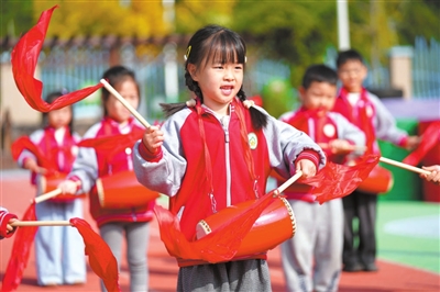 日前,在浙江省湖州市長興縣煤山鎮(zhèn)槐坎中心幼兒園操場上,孩子們在練習腰鼓課間操。近年來,槐坎中心幼兒園將傳統(tǒng)腰鼓納入校園陽光活動,開設園本課程,讓孩子們在強健體魄的同時,感受傳統(tǒng)文化的獨特魅力。 陳海偉 攝