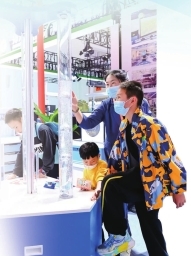 第84屆教育裝備展示會現(xiàn)場學生體驗智能化實驗設備。