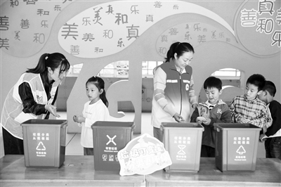 近日,在江蘇省如皋市如城街道東皋幼兒園內(nèi),垃圾分類監(jiān)督員帶著小朋友體驗(yàn)垃圾分類投放。當(dāng)日,如皋市城市管理局垃圾分類監(jiān)督員與如城街道文明實(shí)踐員走進(jìn)東皋幼兒園,通過創(chuàng)意手工變廢為寶、講解資源保護(hù)知識(shí)、垃圾分類趣味游戲等方式,引導(dǎo)孩子們自覺樹立低碳理念,以實(shí)際行動(dòng)踐行勤儉節(jié)約的傳統(tǒng)美德。