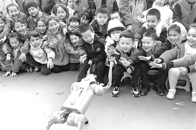 近日,新疆烏魯木齊市第一百二十小學(xué)學(xué)生與機(jī)器狗互動(dòng)。當(dāng)日,烏魯木齊市科技館科普小分隊(duì)走進(jìn)該校,開(kāi)展科普宣傳進(jìn)校園系列活動(dòng),為學(xué)生們送上一堂生動(dòng)有趣的“科技+實(shí)踐”科普課。 孫振嵩 攝