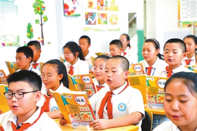 敦煌市東街小學(xué)學(xué)生在課堂上誦讀《涼州詞》。本報記者 尹曉軍 攝