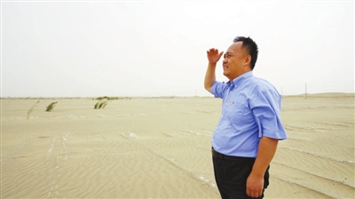 王立志在第十四師昆玉市查看戈壁沙漠情況。 受訪者供圖