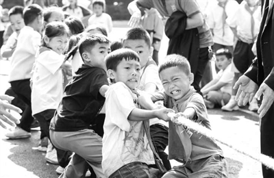 圖為貴州省黔東南苗族侗族自治州從江縣剛邊壯族鄉中心小學學生在參加拔河比賽。入冬以來,該校充分利用大課間和課外活動時間開展多種體育活動,讓學生鍛煉身體、增強體質。通訊員 羅京來 攝