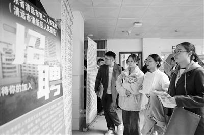 11月23日,湖南省衡陽市,南華大學2025屆畢業生在觀看用人單位崗位需求信息。當日,南華大學2025屆畢業生冬季綜合雙選會舉行,220家用人單位攜帶1025個用人崗位來校招聘,崗位需求人數達10923人。曹正平 攝