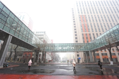 11月26日,學生在哈爾濱工業大學暖廊內穿行。