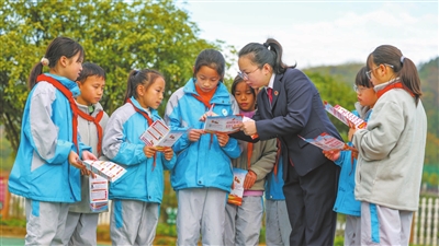 11月28日,在貴州省銅仁市玉屏侗族自治縣第四小學,檢察官向學生普及憲法知識。當天,玉屏縣人民檢察院組織檢察官走進第四小學,開展“憲法知識進校園”活動,開設憲法主題教育課,普及憲法知識。胡攀學 攝