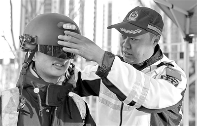 河北省秦皇島市公安局交警支隊民警引導燕山大學學生體驗智能頭盔。在第十三個全國交通安全日來臨之際,該交警支隊聯合燕山大學開展“文明交通 攜手共創”活動?;顒咏M織部分民警走進校園,通過交通安全知識講座、趣味交通安全游戲互動、體驗酒精測試等方式,為大學生普及交通安全相關知識,增強學生的交通安全意識。