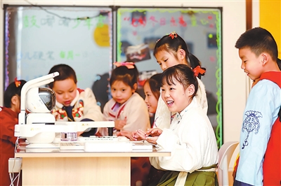 12月1日,福建省福州市鼓樓區水部街道閩都社區,小朋友們正在與智慧下棋機器人比拼棋藝。今年來,鼓樓區根據群眾“心愿清單”,量身定制“點單式”周末公益課,有效豐富課后服務內容,促進青少年全面、健康成長。謝貴明 攝