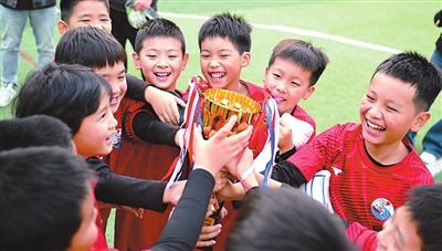 12月2日,湖北省武昌實驗中學沙湖學校學生在四年級組足球聯賽奪冠后慶祝。近年來,該校以社團活動為平臺,積極開展特色教育,豐富校園文化生活。學生可自主選擇參加足球、排球、籃球、乒乓球、擊劍等多種社團課程,強健體魄,快樂成長。