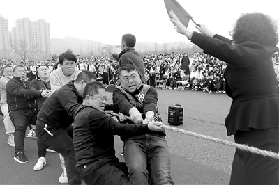 遼寧省莊河市高級中學教師在進行拔河比賽。 學校供圖