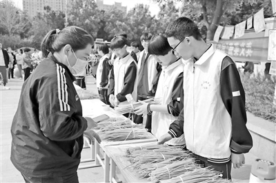 河北省無極中學的學生在進行蔬菜義賣。 學校供圖