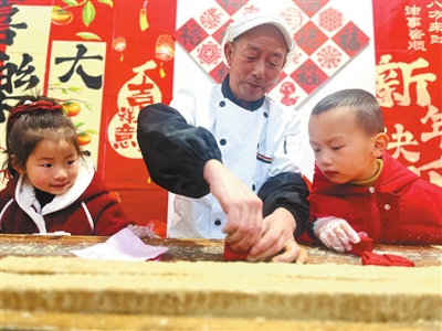 “拜年不帶麻酥糖,請君不要進廳堂……”在春節即將到來之際,安徽省黃山市歙縣王村鎮中心幼兒園的孩子們哼唱著歌謠,在老手藝人的指導下,制作當地的非物質文化遺產——頂市酥。本報記者 王志鵬 通訊員 黃婷 攝