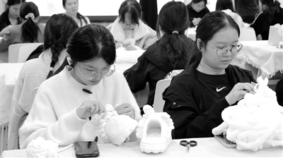 活動(dòng)現(xiàn)場(chǎng),學(xué)生們圍坐一桌,用精心挑選的絨線認(rèn)真地鉤針編織。學(xué)生王文靜邊織邊說:“塔什庫(kù)爾干冬季最低氣溫能達(dá)到零下40攝氏度,我得織快一點(diǎn),盡快把圍巾送給邊疆的孩子們,讓他們能過上一個(gè)溫暖的冬天。”