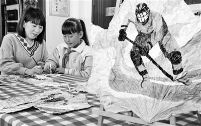 近日,河北省秦皇島市海港區杜莊學區第一小學教師帶領學生彩繪亞冬會主題美術作品。該校組織開展“創意樹葉彩繪為亞冬會助力添彩”活動,豐富學生的課余文化生活,為亞冬會助力添彩。 曹建雄 攝