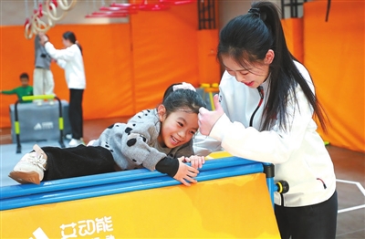 徐州幼兒師范高等專科學校體育學院畢業生徐倩,創辦了多家體能訓練中心。這是她在陪小朋友進行體能練習。