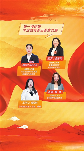 3月9日,全國(guó)人大代表、安徽省阜陽(yáng)市人民政府副市長(zhǎng)楊善竑,全國(guó)人大代表、河北省邯鄲市曲周縣鳳凰幼兒園教師楊會(huì)芳,首都師范大學(xué)學(xué)前教育學(xué)院副教授夏婧,做客中國(guó)教育報(bào)刊社“兩會(huì)訪談錄”,一同探討學(xué)前教育普及普惠相關(guān)話題。