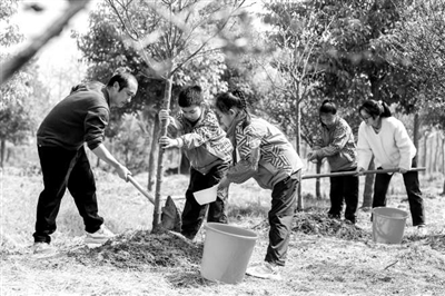 植樹節到來之際,3月11日,在浙江省湖州市長興縣夾浦鎮濱湖村,該鎮中心小學師生和志愿者一起植樹添綠。 譚云俸 攝