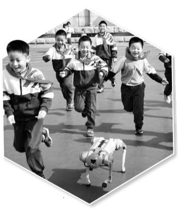 北京景山學校學生與機器人一起奔跑。學校供圖