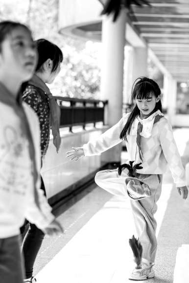近日,杭州市京都小學(xué)學(xué)生課間在走廊上踢毽子。