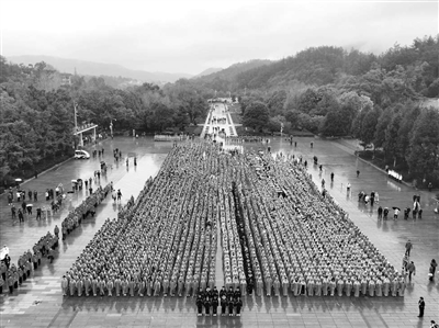 學生在湖南省韶山市毛澤東廣場參加“我的韶山行”紅色研學開班儀式(無人機照片)。