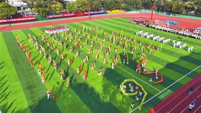 鼓點(diǎn)鏗鏘,一條金龍驀地騰空,龍尾掃過處,喝彩聲響徹操場。