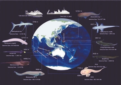 團(tuán)隊(duì)經(jīng)過多次深海巡航,采集了來自深海不同區(qū)域的11種魚類樣本,通過對這些樣本的基因組數(shù)據(jù)進(jìn)行深入分析,構(gòu)建了深海魚類的“生命進(jìn)化樹”,揭示了脊椎動物征服深淵的歷程。結(jié)果顯示,少數(shù)類群的深海魚類在1億年前便開始適應(yīng)深海環(huán)境,而大多數(shù)現(xiàn)存的深海魚類則是在6500萬年前的大滅絕事件后才進(jìn)入深海區(qū)域。