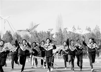板橋鎮中心小學的同學們在放風箏。縣教育局供圖