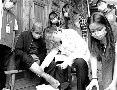 這些年,李校堃一邊做研究,一邊發起多項公益項目,每年帶隊去中西部、農村為深受創面困擾的弱勢群體義診。參與“膚生工程”公益項目的藥學院學生厲丁瑋每次看到李校堃緩緩蹲下給病人看傷口,都鼻子發酸:“他自己有時還需要人扶一把啊。”
