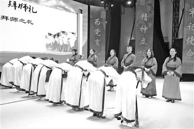 衡水中學青年教師向師傅行拜師禮。