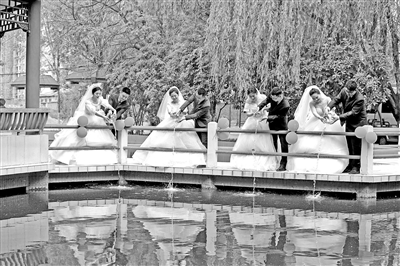 ①學校為教師舉行集體婚禮。