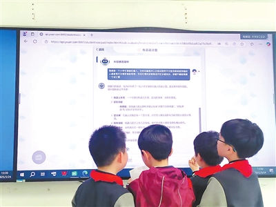 上海市虹口區曲陽第四小學,學生就作業課題解決思路與智能體對話交流。