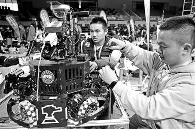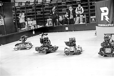 參賽機器人在賽場進行角逐。 趙杰昌 攝